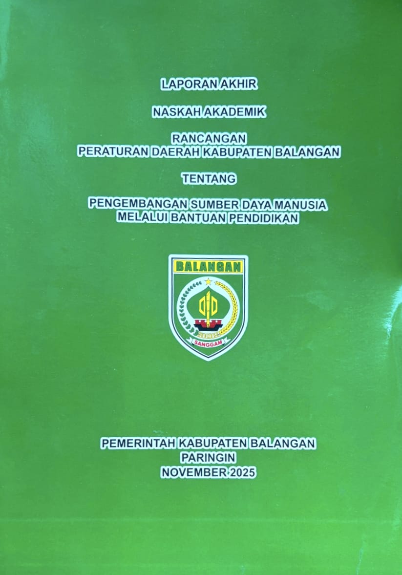 SATU NASKAH DIJILID SOFT COVER BERWARNA HIJAU DENGAN FONT HITAM BORDER PUTIH BESERTA LAMBANG PEMERINTAH KABUPATEN BALANGAN