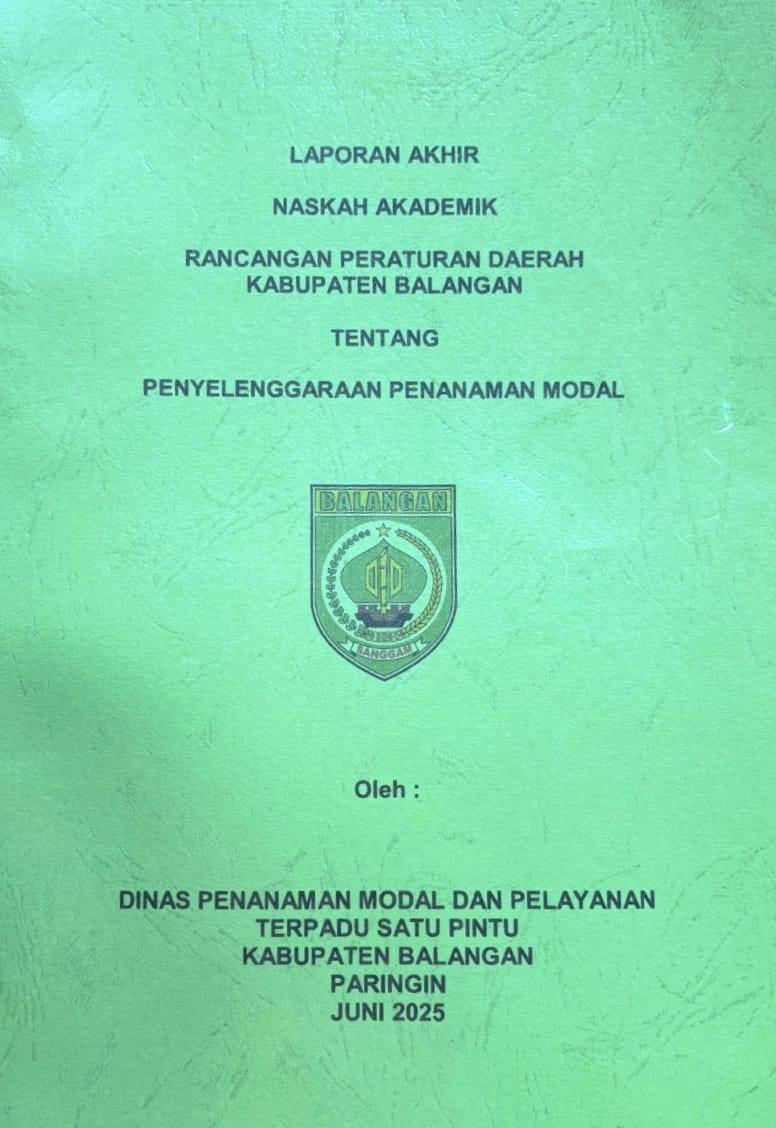 SATU NASKAH DIJILID SOFT COVER BERWARNA HIJAU DENGAN FONT HITAM BESERTA LAMBANG PEMERINTAH KABUPATEN BALANGAN